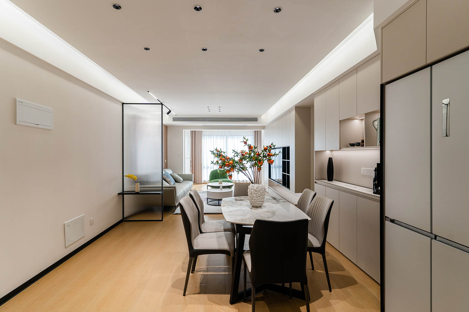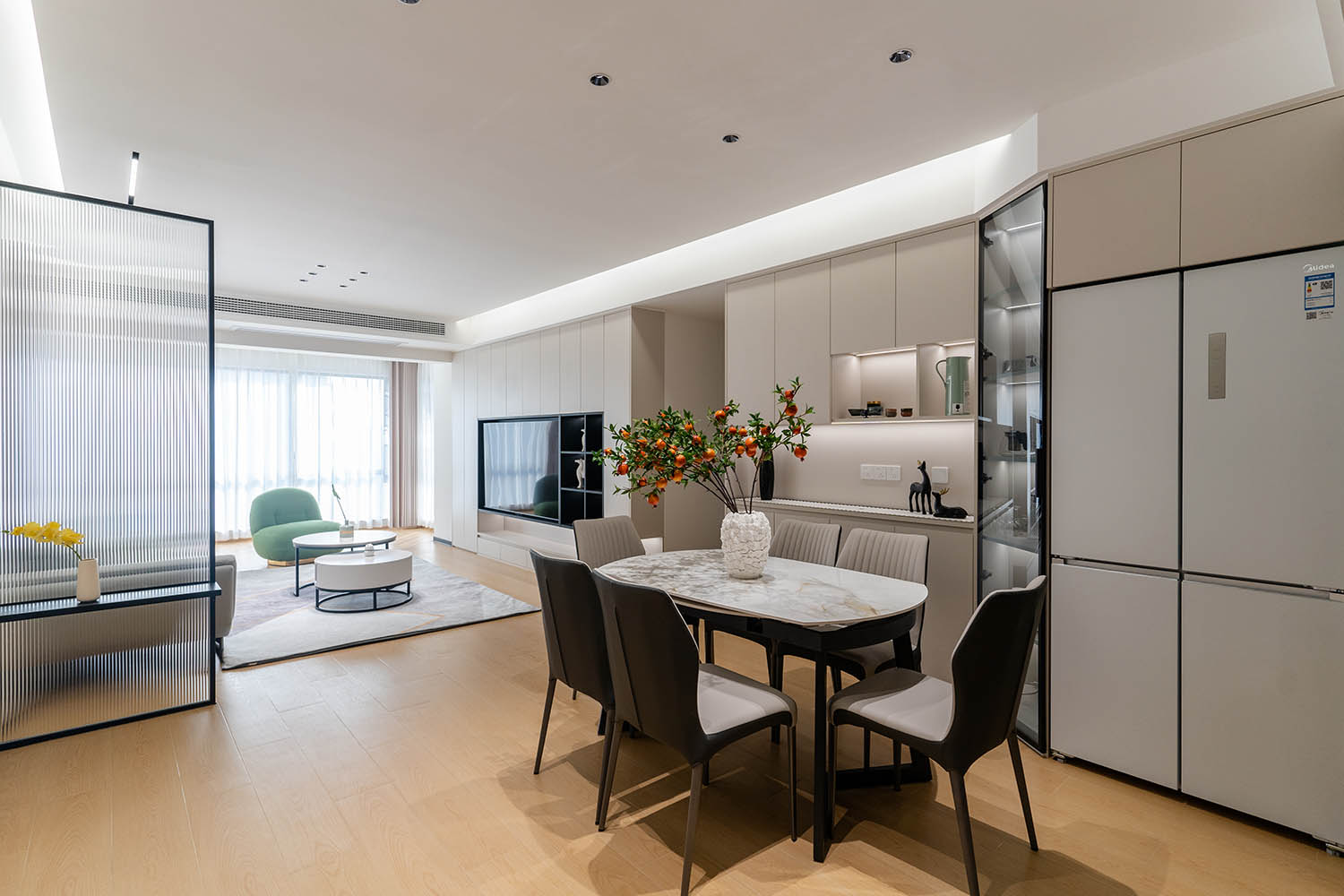 本案以“現(xiàn)代奶油風”為基調(diào),融合柔和的曲線、溫暖的色調(diào)和極簡的布局,打造出一個輕盈通透、充滿治愈感的理想居所。設計師通過低飽和色彩、自然材質(zhì)與軟糯的家具搭配,讓空間既溫馨又不失高級感,完美契合年輕家庭對舒適與美學的雙重追求。