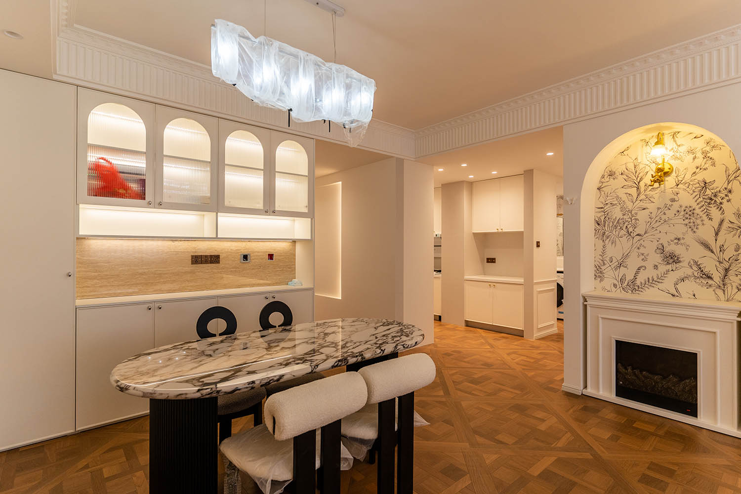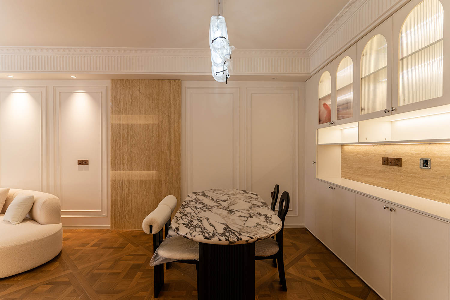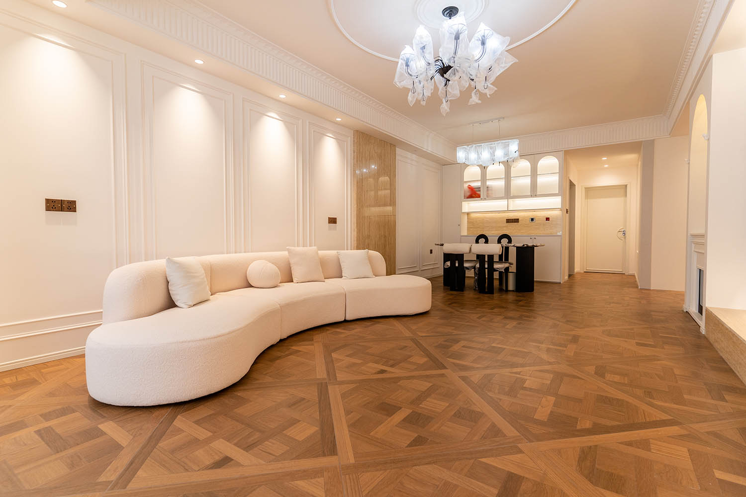 法式風(fēng)格以其優(yōu)雅的線條、精致的細(xì)節(jié)和浪漫的氛圍,成為高端家居設(shè)計(jì)的經(jīng)典選擇。它巧妙地將古典美學(xué)與現(xiàn)代生活需求相結(jié)合,創(chuàng)造出既有藝術(shù)感又實(shí)用舒適的居住環(huán)境。 對(duì)于133平米的戶型,法式風(fēng)格能充分發(fā)揮空間優(yōu)勢,通過對(duì)稱布局、精致雕花和優(yōu)雅配色,打造出充滿貴族氣質(zhì)與藝術(shù)氛圍的理想居所。 設(shè)計(jì)理念與空間基調(diào) 玫瑰御園133平米法式風(fēng)格的核心在于營造 “優(yōu)雅、浪漫、精致” 的生活氛圍。整體空間以淺色調(diào)為基底,采用米白、香草色、淺灰等優(yōu)雅色調(diào)作為主調(diào),為空間奠定明亮高雅的基調(diào)。