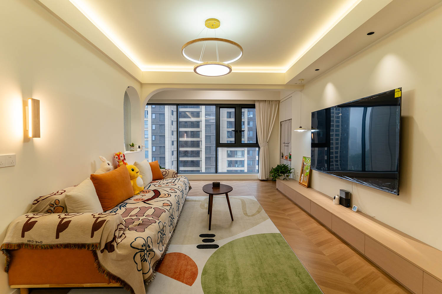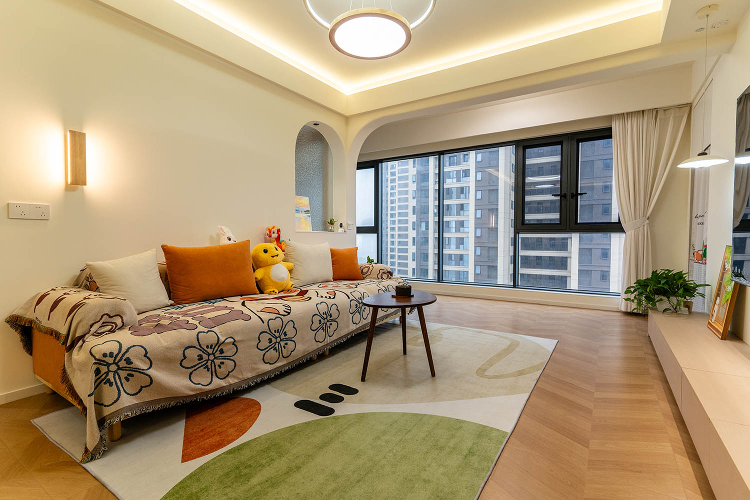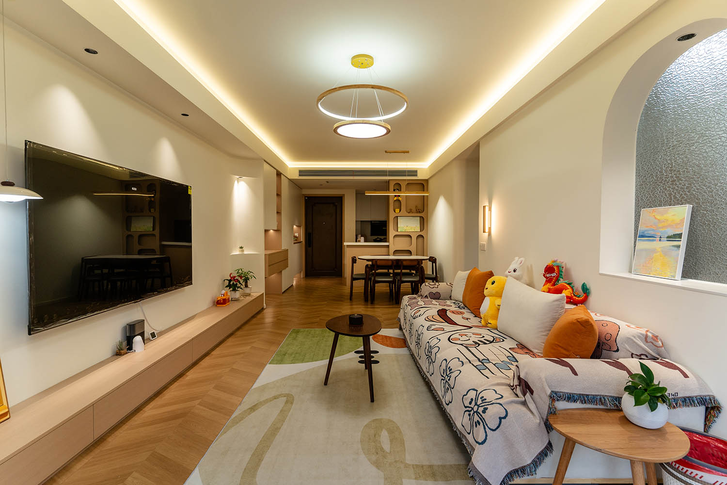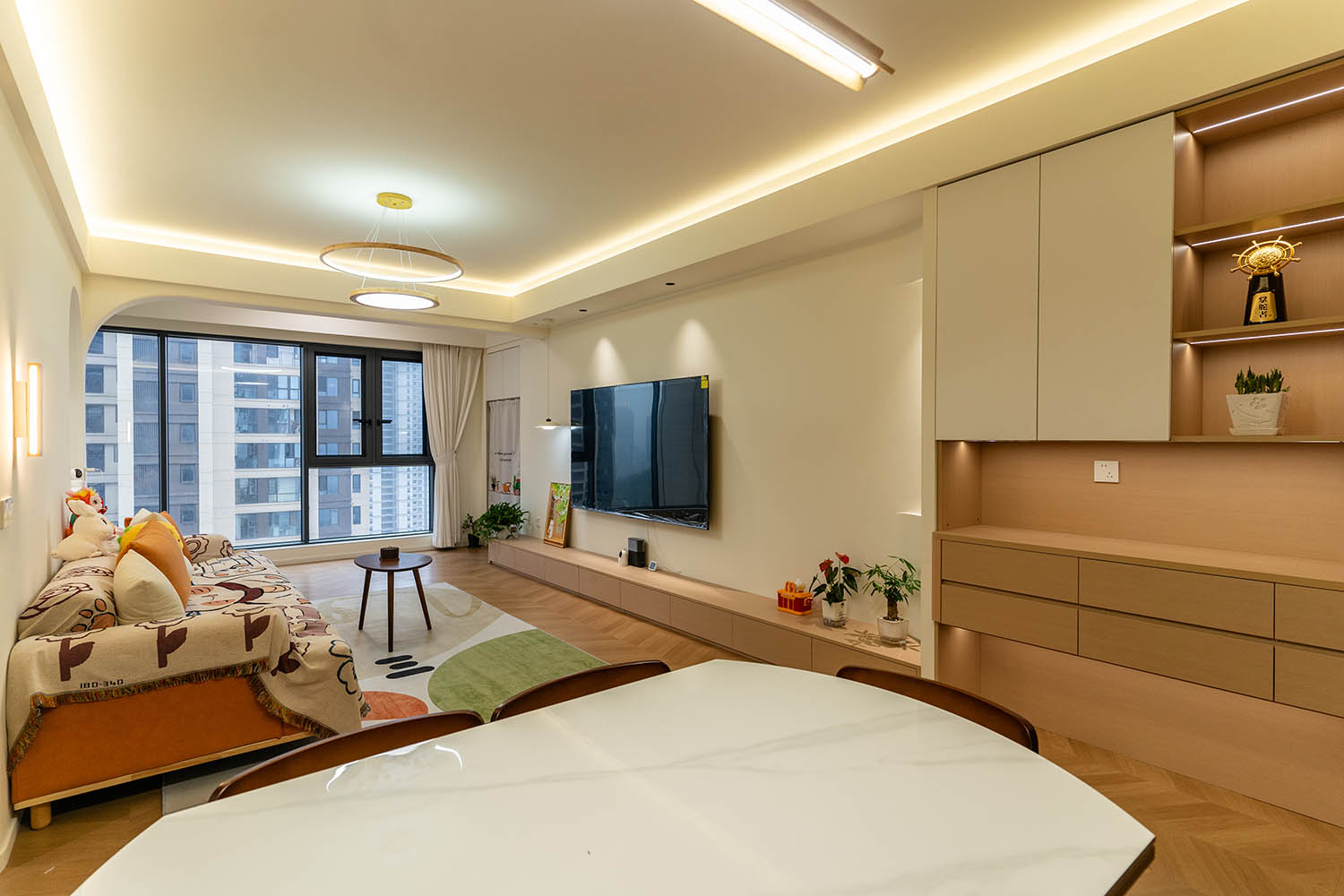 設(shè)計(jì)理念與空間基調(diào) 原木奶油風(fēng)以低飽和度色彩、自然材質(zhì)與柔和線(xiàn)條為核心,在建發(fā)央著100㎡的戶(hù)型中,設(shè)計(jì)師通過(guò)奶油色基底與原木元素的融合,營(yíng)造出溫暖治愈的居家氛圍。整體風(fēng)格遵循“簡(jiǎn)而不空”的原則,硬裝以簡(jiǎn)約的幾何造型與流暢的動(dòng)線(xiàn)為主,軟裝則強(qiáng)調(diào)材質(zhì)的天然感與舒適性,在實(shí)用性與美學(xué)之間找到完美平衡。 建發(fā)央著100㎡的原木奶油風(fēng),通過(guò)色彩、材質(zhì)與光影的巧妙平衡,將自然治愈感融入日常。既以開(kāi)放式布局與智能收納滿(mǎn)足了現(xiàn)代生活的高效需求,又以弧形曲線(xiàn)與柔軟織物撫慰居者身心,真正詮釋了 “簡(jiǎn)約中見(jiàn)細(xì)節(jié),溫柔中藏高級(jí)” 的居住理想。