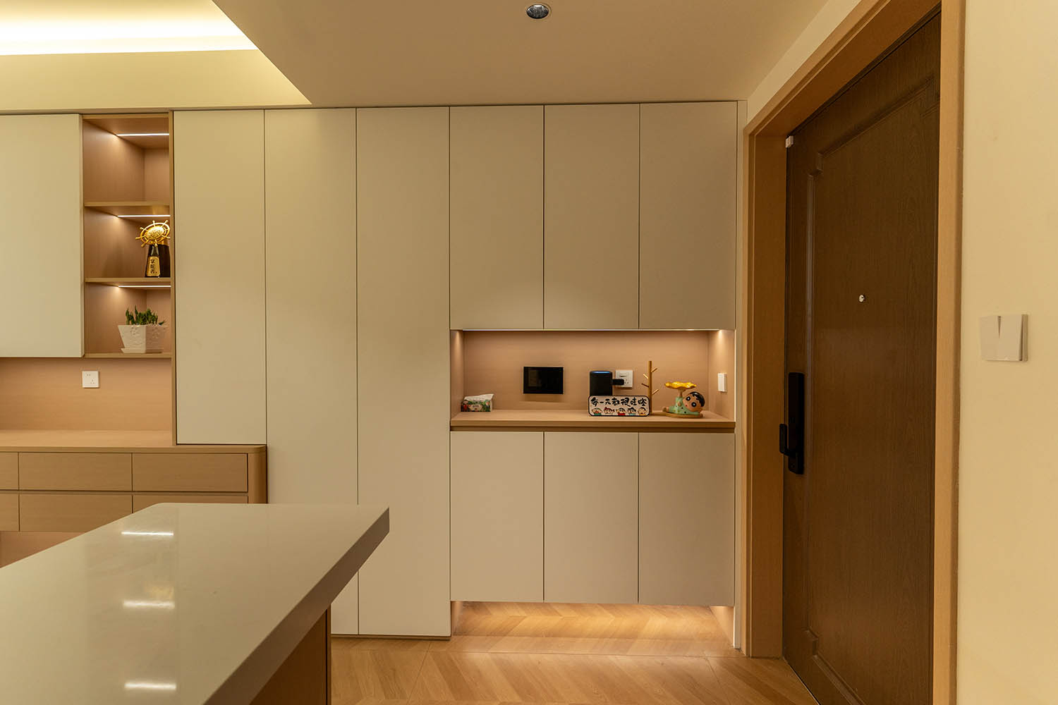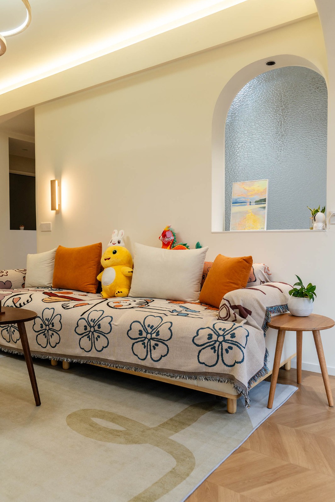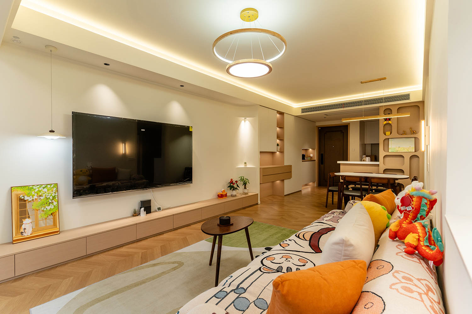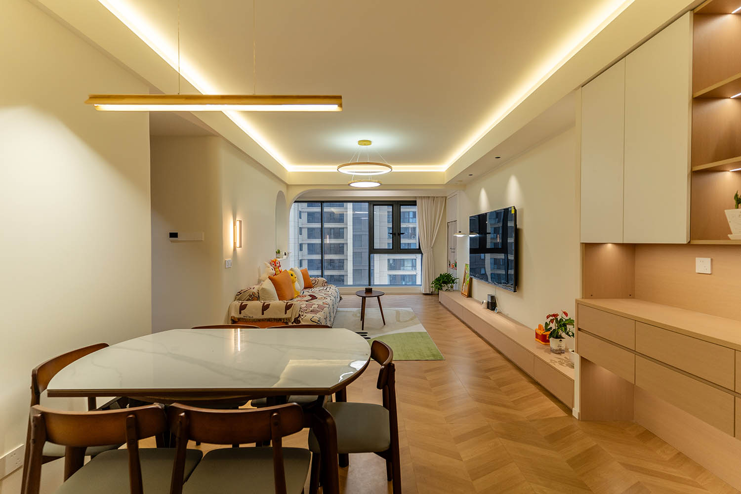 設(shè)計(jì)理念與空間基調(diào) 原木奶油風(fēng)以低飽和度色彩、自然材質(zhì)與柔和線(xiàn)條為核心,在建發(fā)央著100㎡的戶(hù)型中,設(shè)計(jì)師通過(guò)奶油色基底與原木元素的融合,營(yíng)造出溫暖治愈的居家氛圍。整體風(fēng)格遵循“簡(jiǎn)而不空”的原則,硬裝以簡(jiǎn)約的幾何造型與流暢的動(dòng)線(xiàn)為主,軟裝則強(qiáng)調(diào)材質(zhì)的天然感與舒適性,在實(shí)用性與美學(xué)之間找到完美平衡。 建發(fā)央著100㎡的原木奶油風(fēng),通過(guò)色彩、材質(zhì)與光影的巧妙平衡,將自然治愈感融入日常。既以開(kāi)放式布局與智能收納滿(mǎn)足了現(xiàn)代生活的高效需求,又以弧形曲線(xiàn)與柔軟織物撫慰居者身心,真正詮釋了 “簡(jiǎn)約中見(jiàn)細(xì)節(jié),溫柔中藏高級(jí)” 的居住理想。