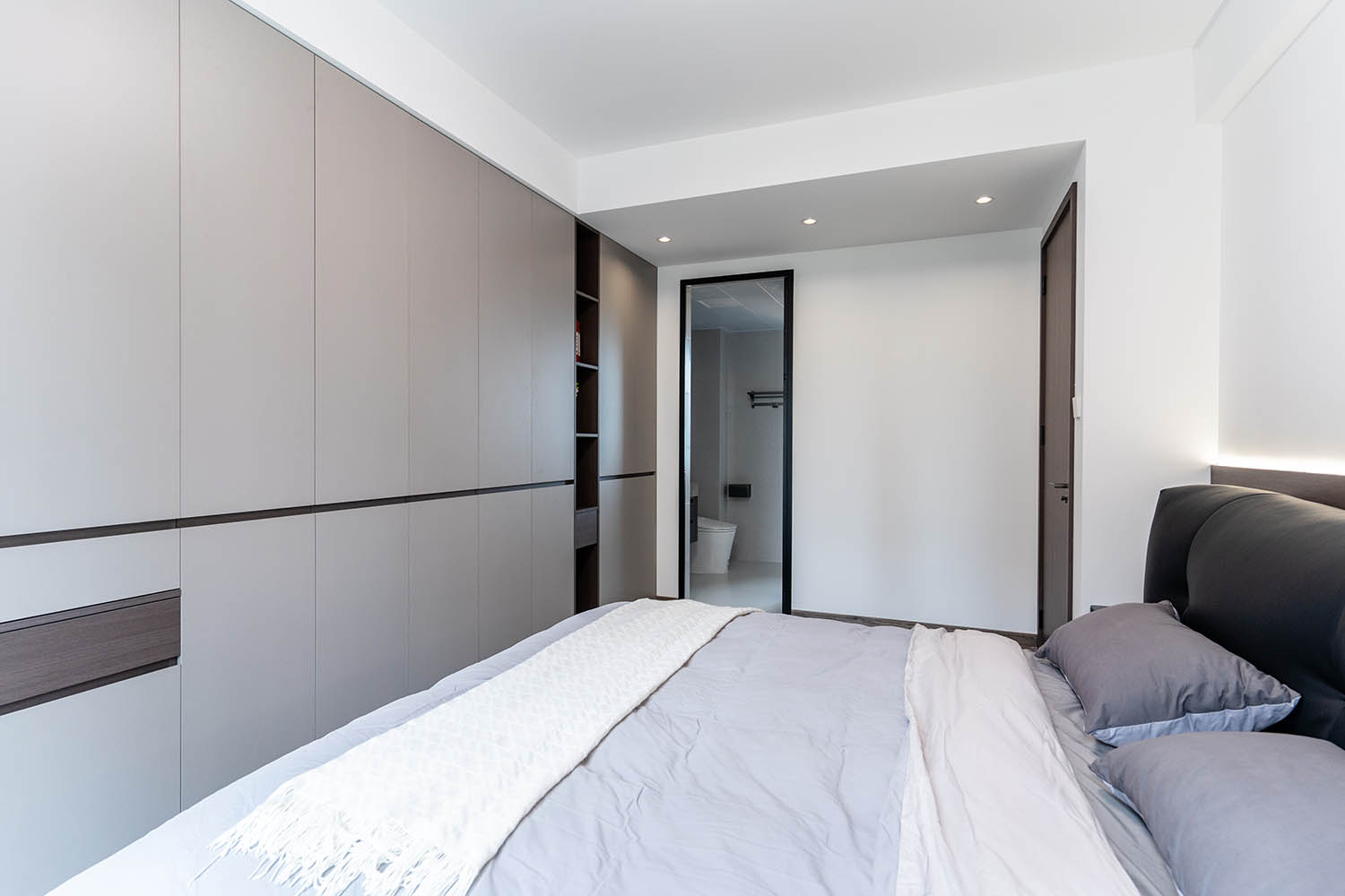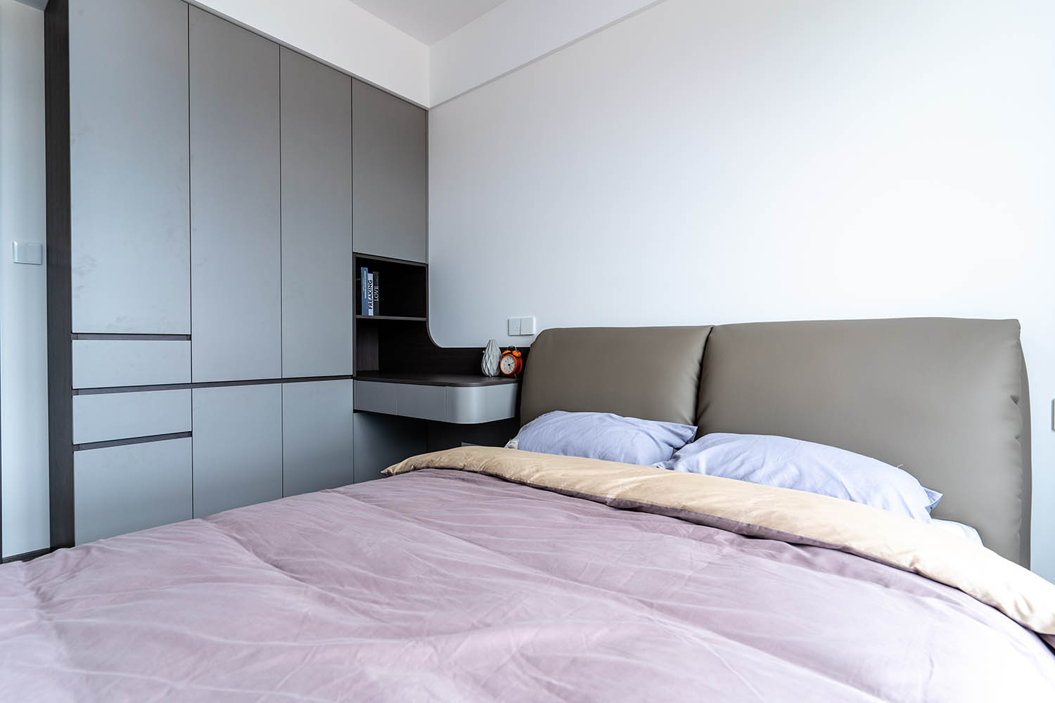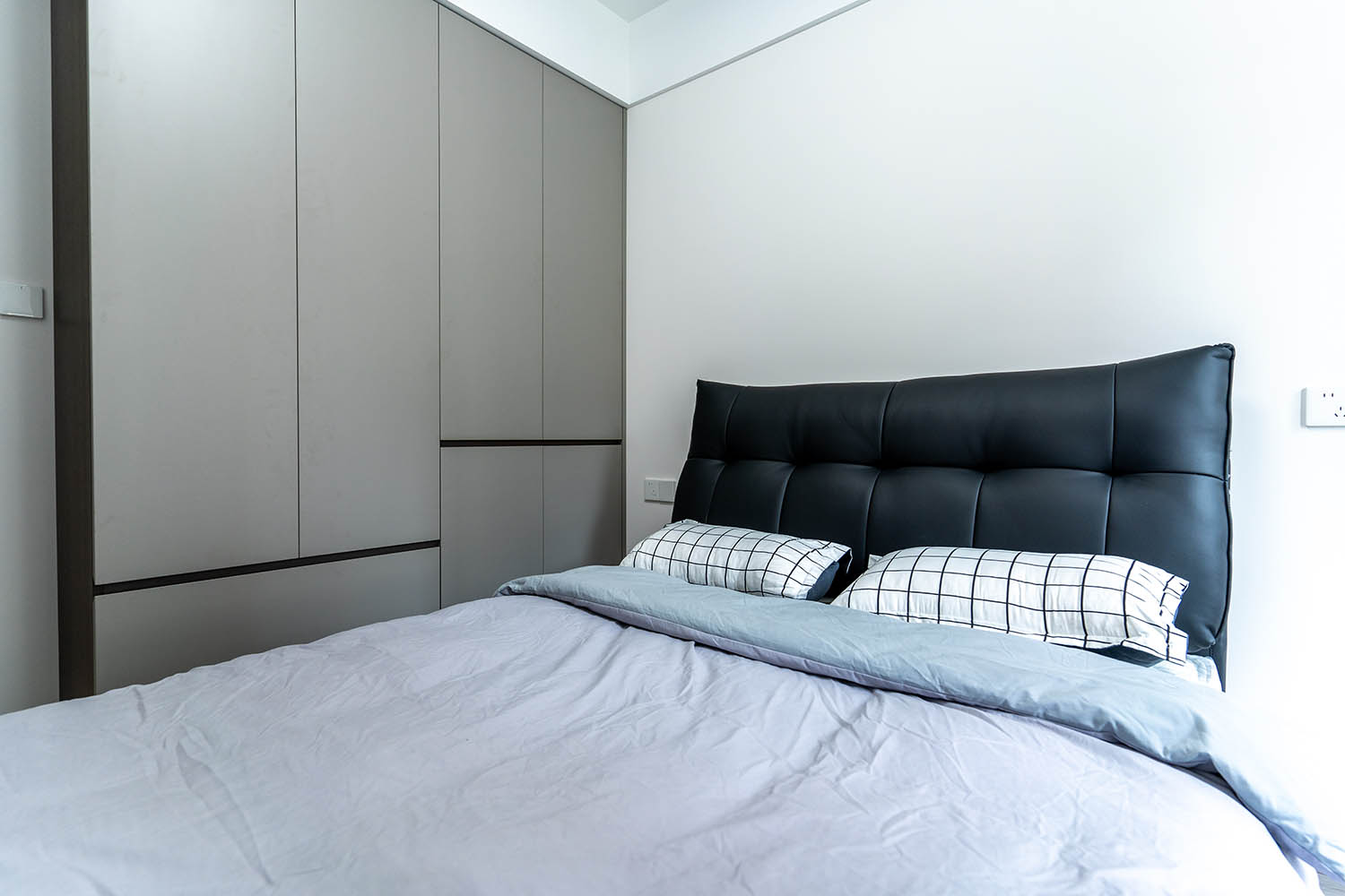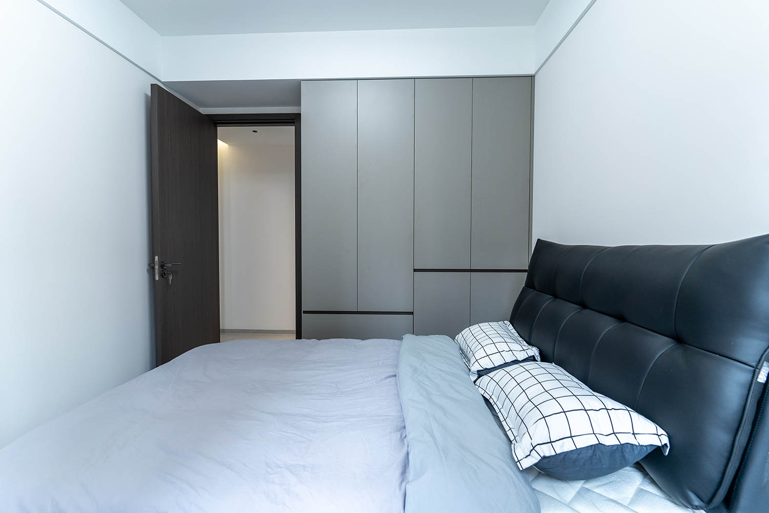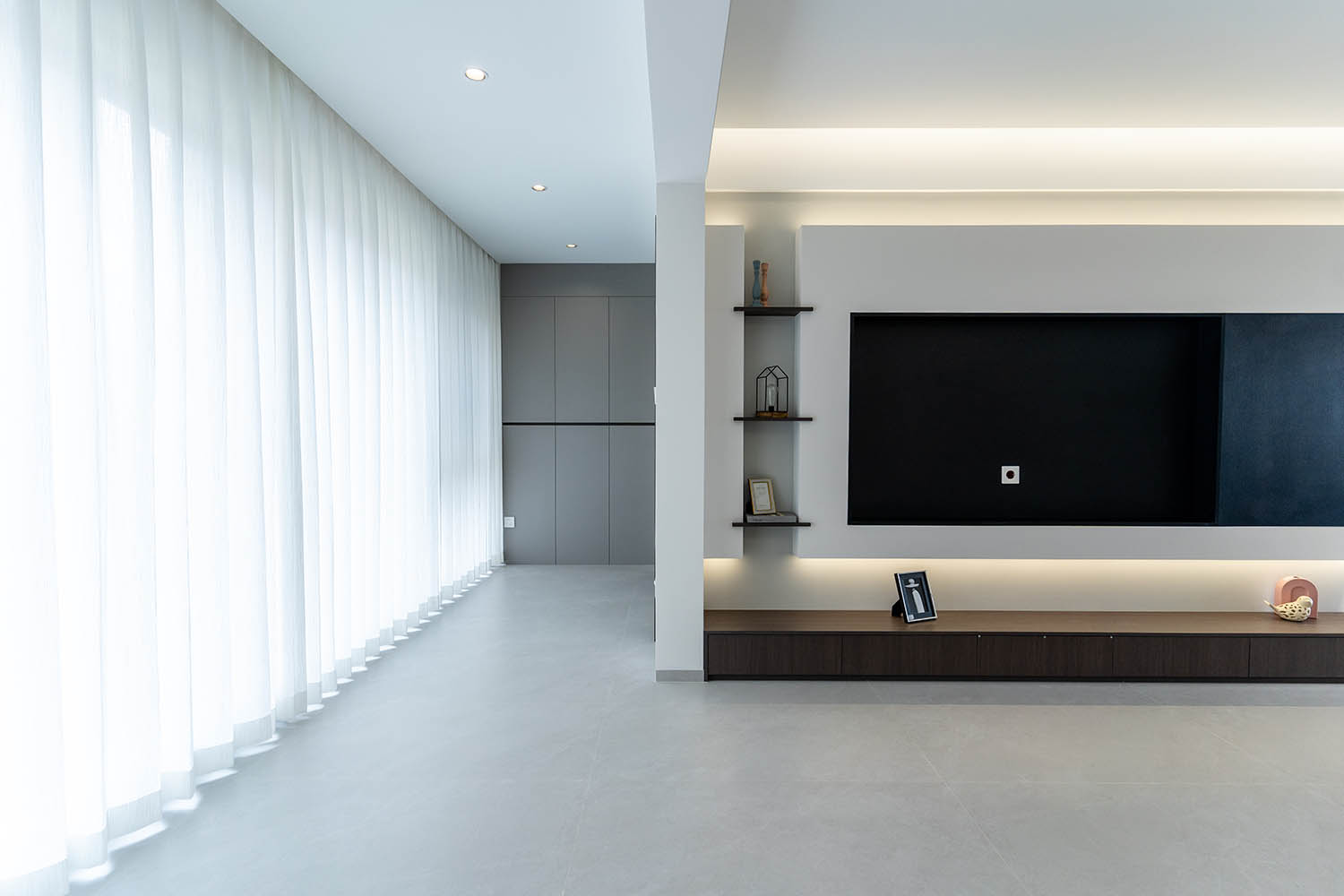 用黑、白、灰的經(jīng)典碰撞,詮釋意式極簡(jiǎn)的「做減法的藝術(shù)」。沒(méi)有冗余裝飾,以利落線(xiàn)條、純粹色調(diào),讓空間回歸「實(shí)用與質(zhì)感共生」的本質(zhì),每一處都藏著 “用必要定義高級(jí)” 的設(shè)計(jì)智慧。 無(wú)主燈設(shè)計(jì) + 線(xiàn)性燈帶,讓光線(xiàn)柔和包裹空間;黑色皮質(zhì)沙發(fā)簡(jiǎn)化形態(tài),與灰色背景墻呼應(yīng),詮釋意式「隱于簡(jiǎn)的高級(jí)感」,舍去繁雜裝飾,還原空間本真互動(dòng)場(chǎng)域。每一寸存在都值得被凝視,讓走過(guò)空間的人,忍不住贊嘆這份 “不動(dòng)聲色的精致” 。