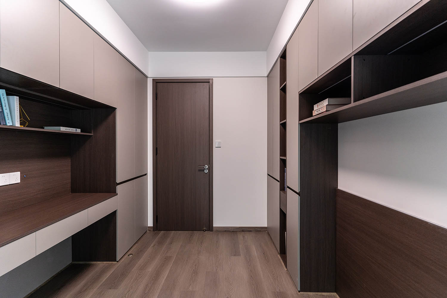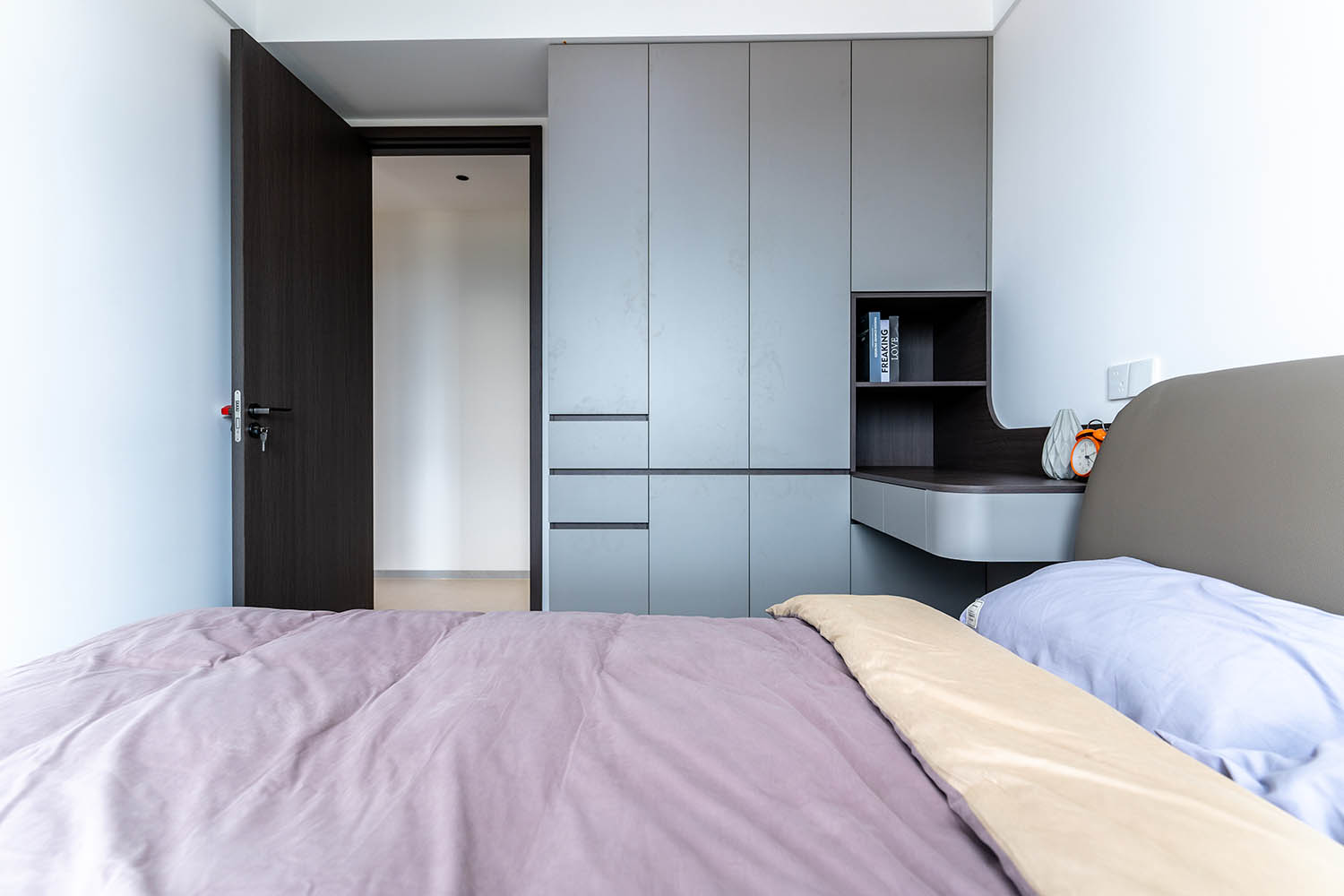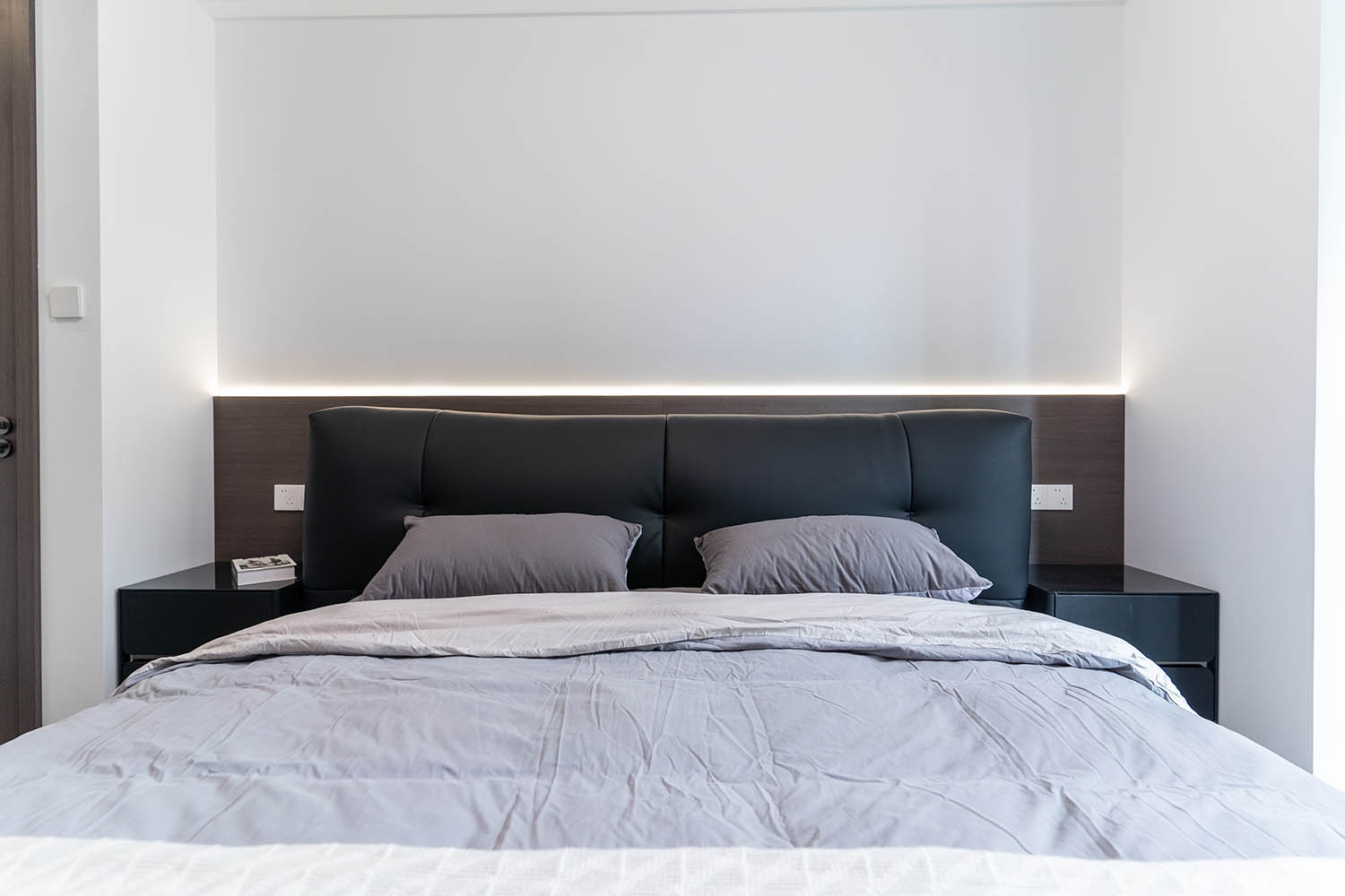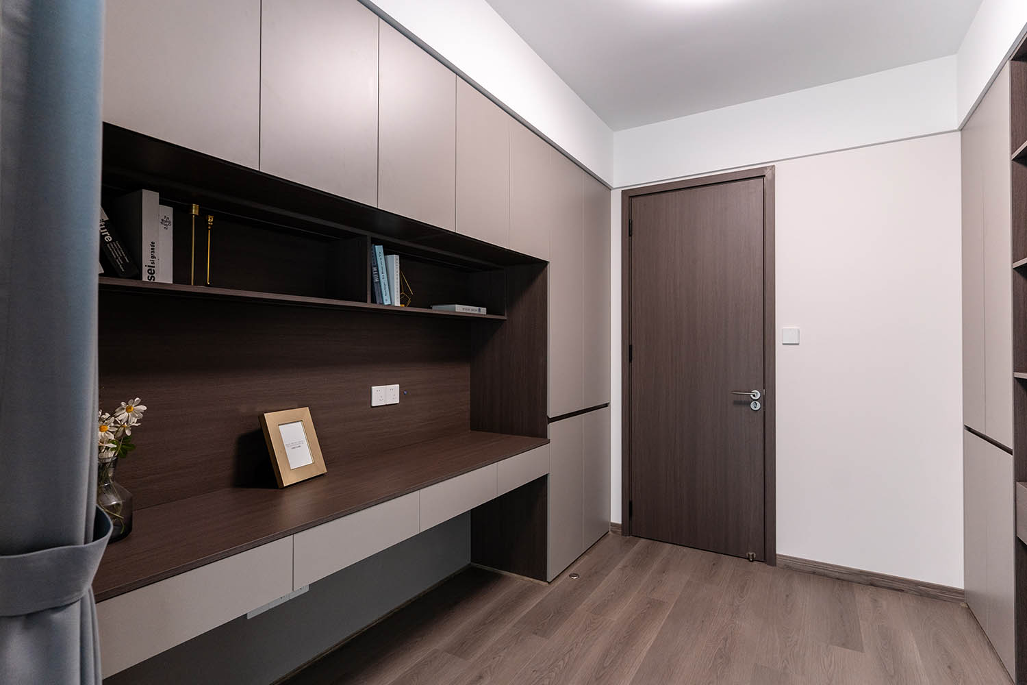 用黑、白、灰的經(jīng)典碰撞,詮釋意式極簡(jiǎn)的「做減法的藝術(shù)」。沒(méi)有冗余裝飾,以利落線(xiàn)條、純粹色調(diào),讓空間回歸「實(shí)用與質(zhì)感共生」的本質(zhì),每一處都藏著 “用必要定義高級(jí)” 的設(shè)計(jì)智慧。 無(wú)主燈設(shè)計(jì) + 線(xiàn)性燈帶,讓光線(xiàn)柔和包裹空間;黑色皮質(zhì)沙發(fā)簡(jiǎn)化形態(tài),與灰色背景墻呼應(yīng),詮釋意式「隱于簡(jiǎn)的高級(jí)感」,舍去繁雜裝飾,還原空間本真互動(dòng)場(chǎng)域。每一寸存在都值得被凝視,讓走過(guò)空間的人,忍不住贊嘆這份 “不動(dòng)聲色的精致” 。
