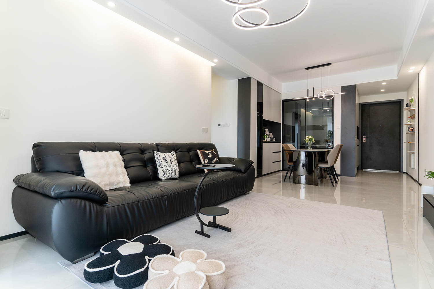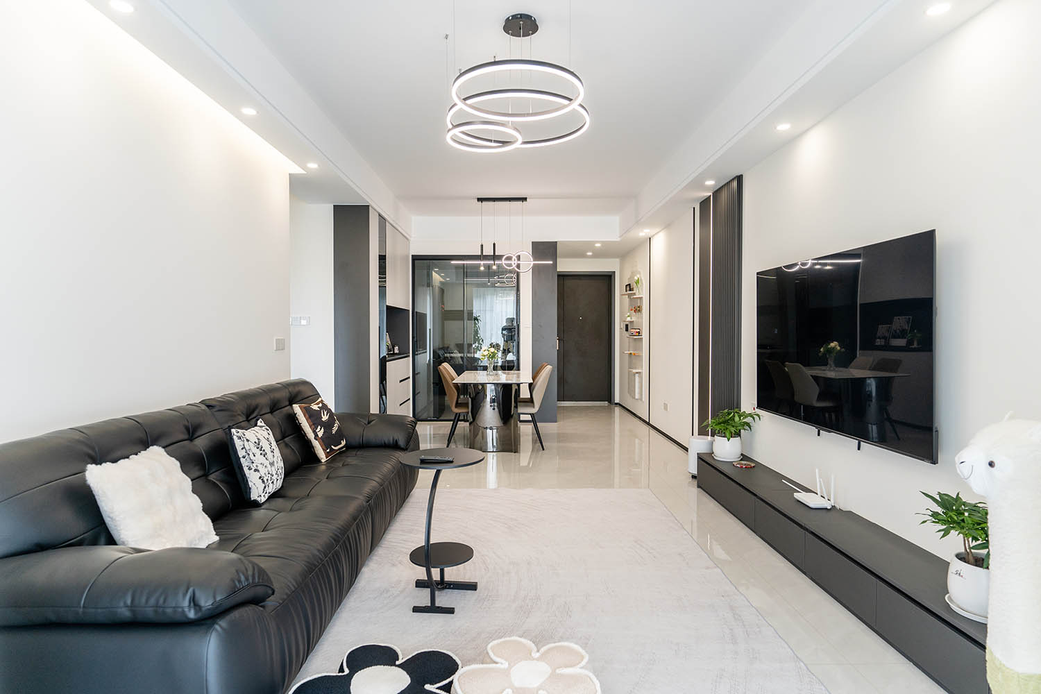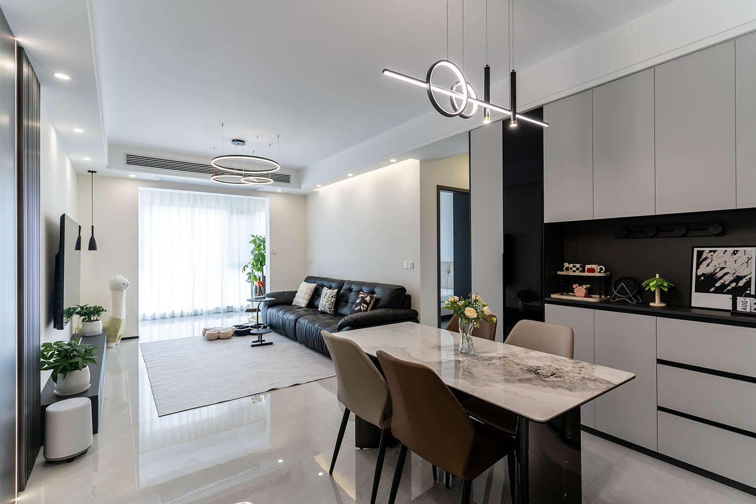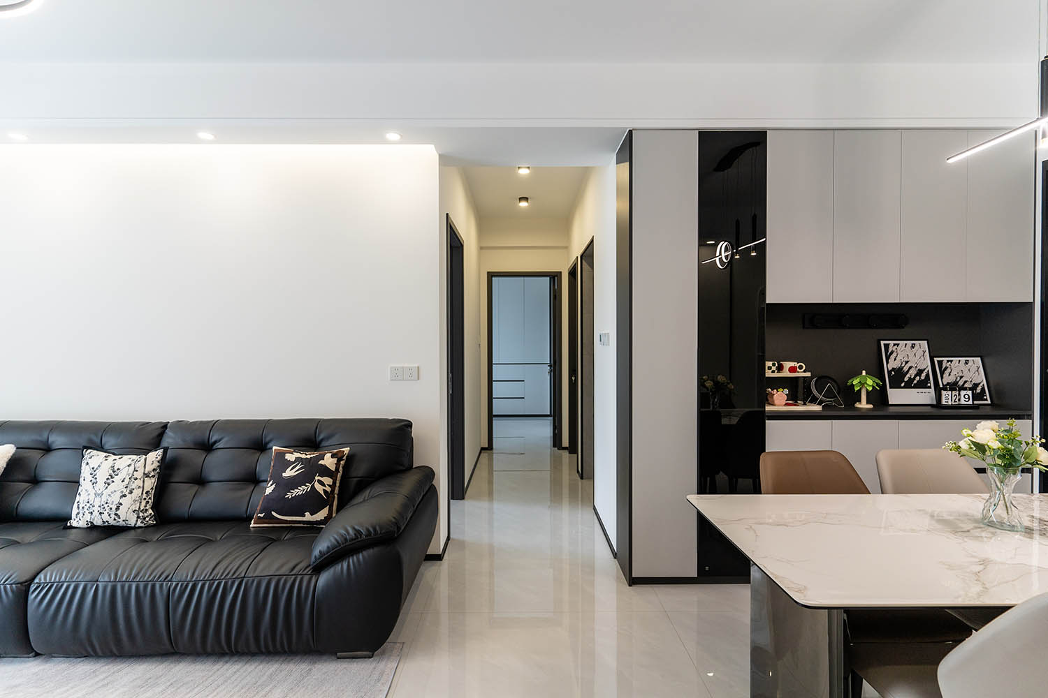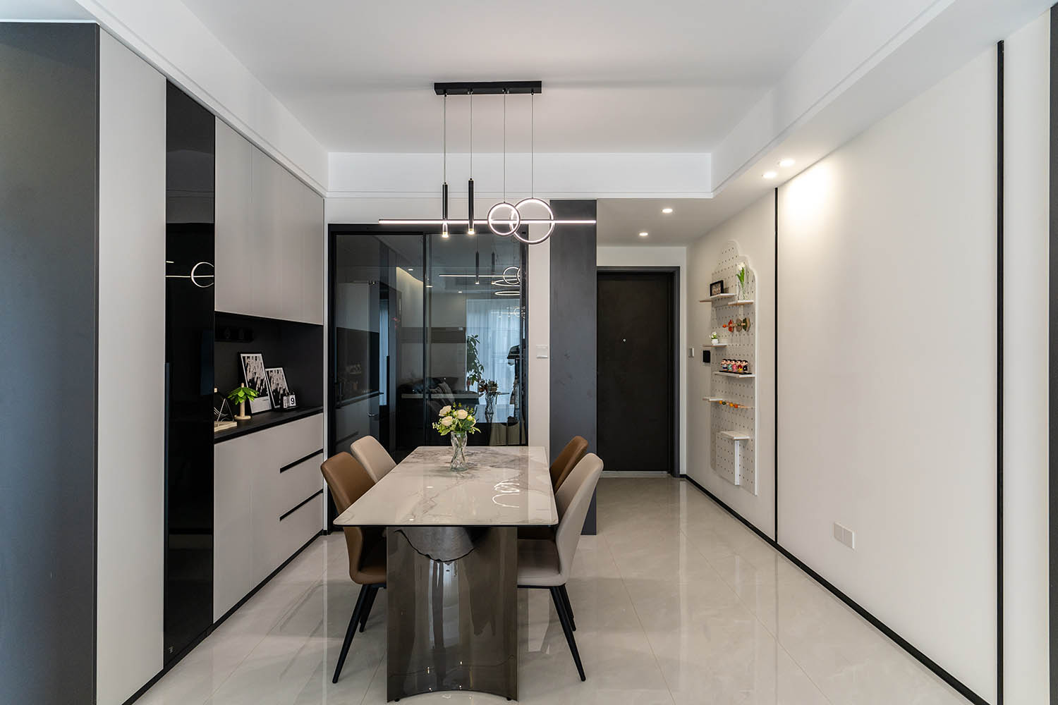 這套位于株洲金茂悅的102㎡現(xiàn)代黑白灰風(fēng)格家居,巧妙運(yùn)用黑白灰基調(diào),融入利落線條、質(zhì)感材質(zhì)和智慧收納,打造出一個(gè)既簡(jiǎn)約大氣又舒適實(shí)用的現(xiàn)代居所。下面我們來(lái)細(xì)致賞析其設(shè)計(jì)亮點(diǎn)。