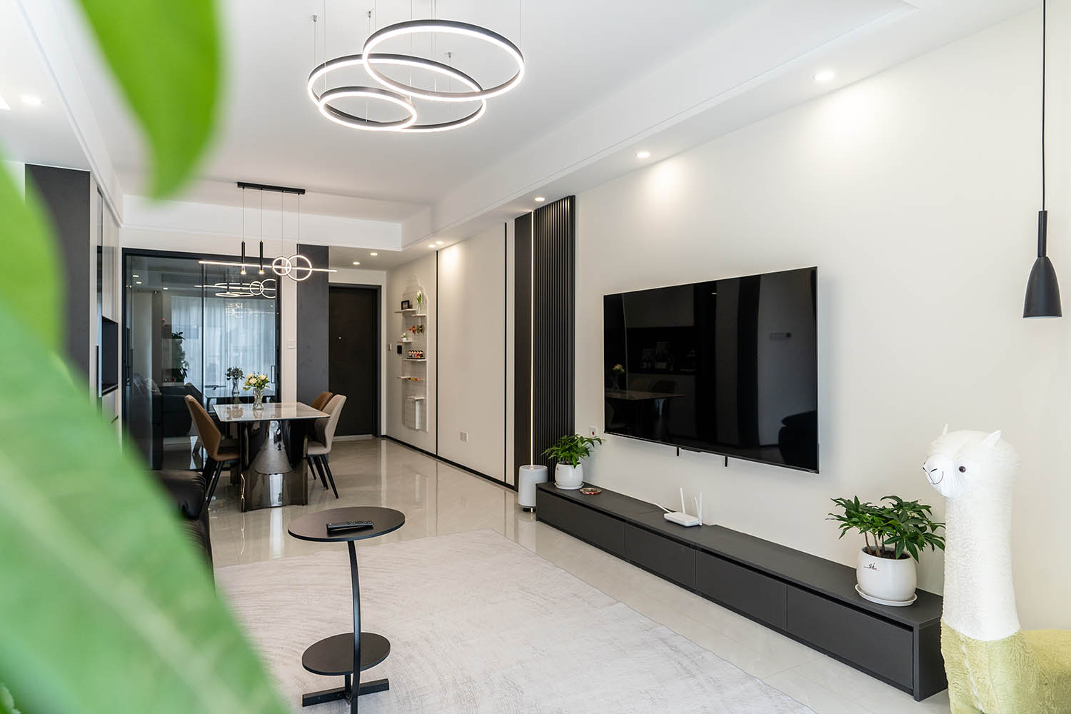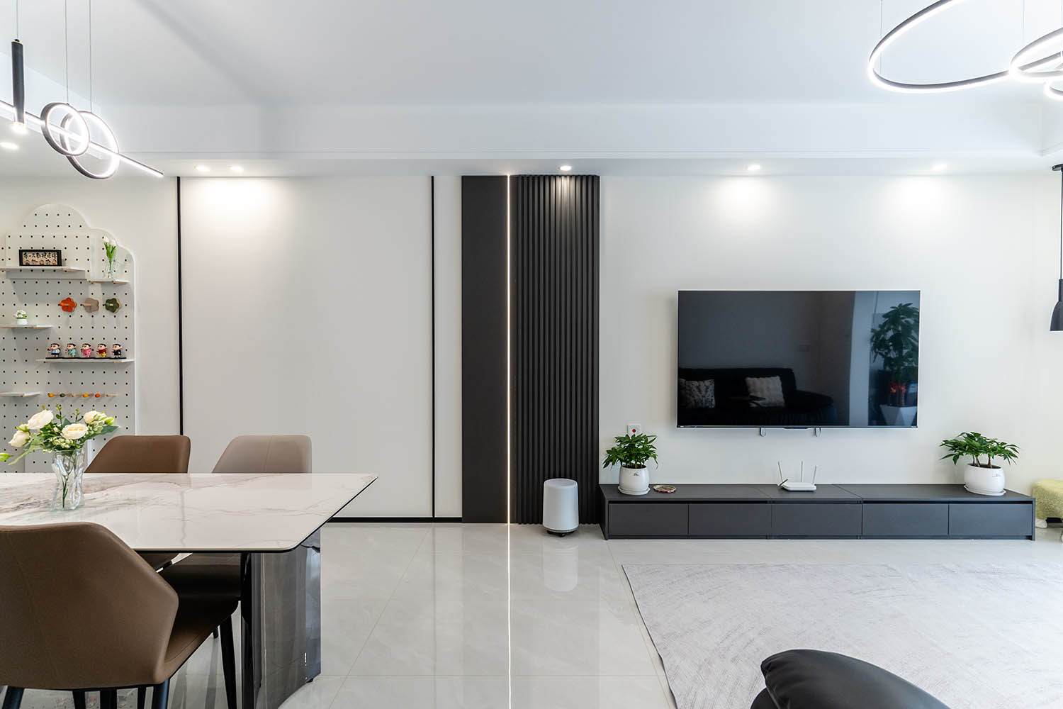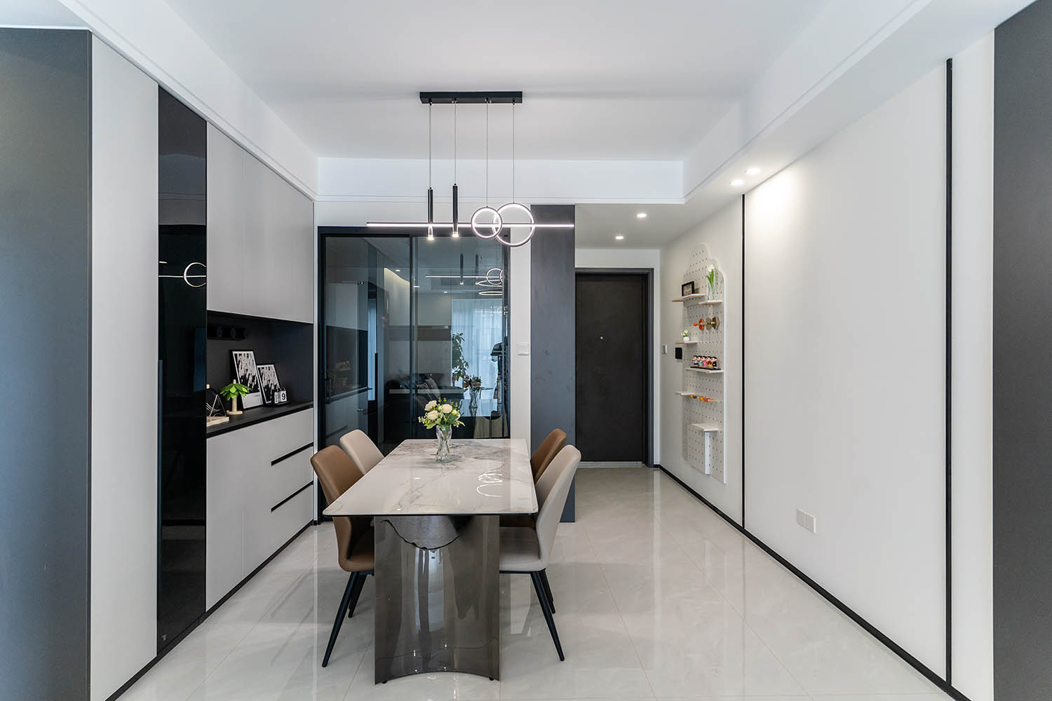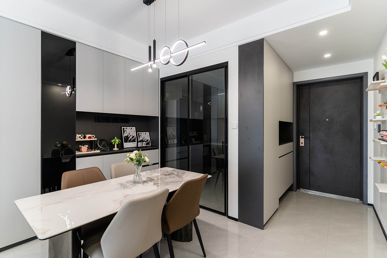 這套位于株洲金茂悅的102㎡現(xiàn)代黑白灰風(fēng)格家居,巧妙運(yùn)用黑白灰基調(diào),融入利落線條、質(zhì)感材質(zhì)和智慧收納,打造出一個(gè)既簡(jiǎn)約大氣又舒適實(shí)用的現(xiàn)代居所。下面我們來(lái)細(xì)致賞析其設(shè)計(jì)亮點(diǎn)。
