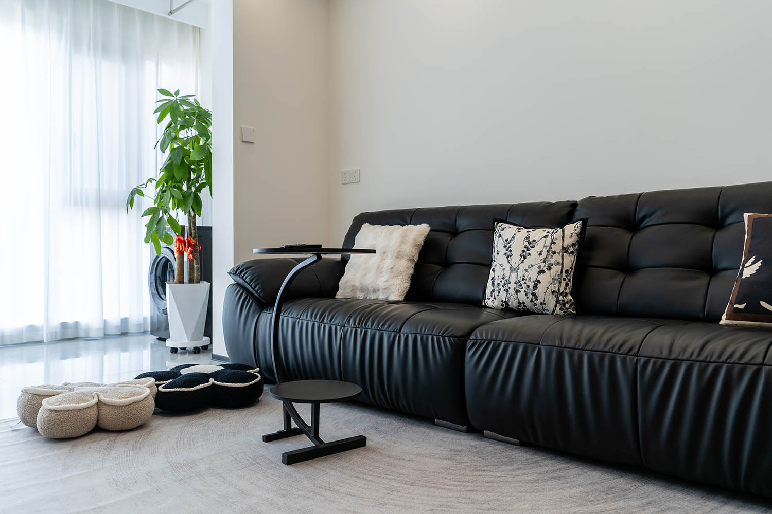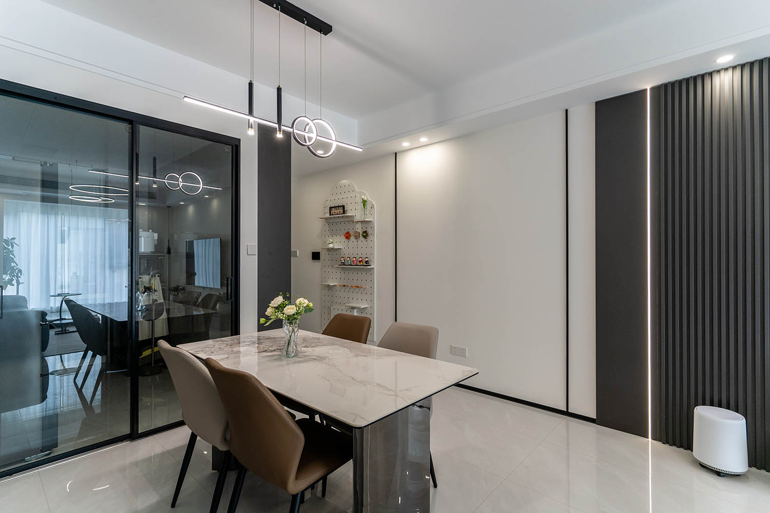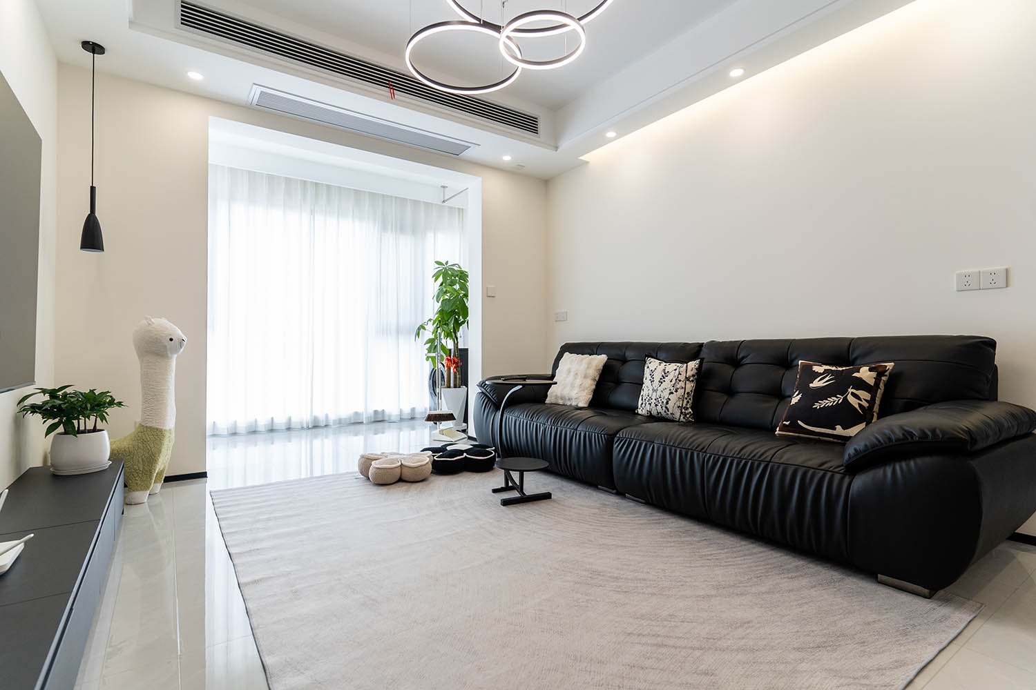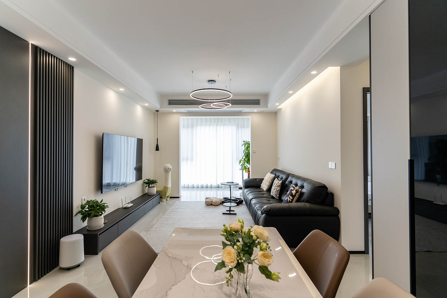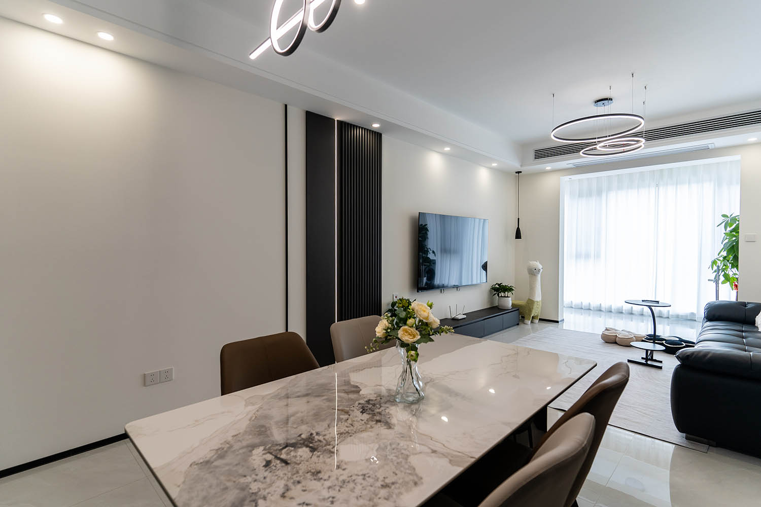 這套位于株洲金茂悅的102㎡現(xiàn)代黑白灰風(fēng)格家居,巧妙運(yùn)用黑白灰基調(diào),融入利落線條、質(zhì)感材質(zhì)和智慧收納,打造出一個(gè)既簡(jiǎn)約大氣又舒適實(shí)用的現(xiàn)代居所。下面我們來(lái)細(xì)致賞析其設(shè)計(jì)亮點(diǎn)。